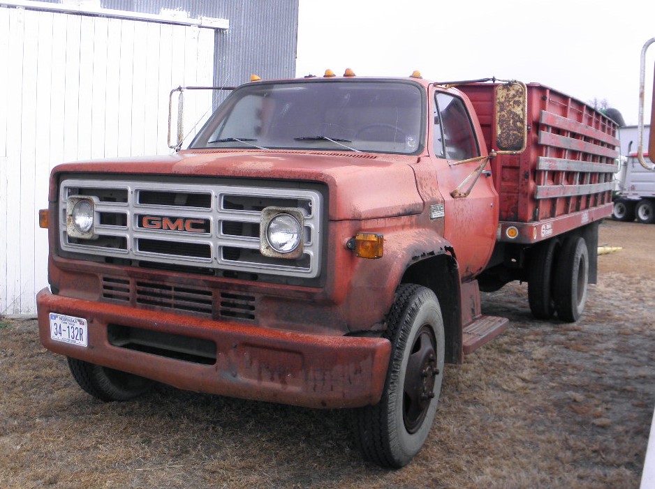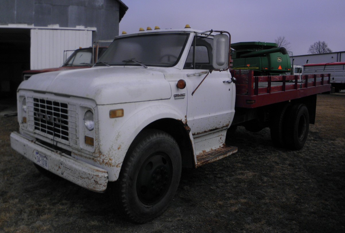 - 1971 GMC 5500, Vin #CE503Y177114, 85255 miles, 14ft Flatbed, 4spd w/ splitter, 350 V-8