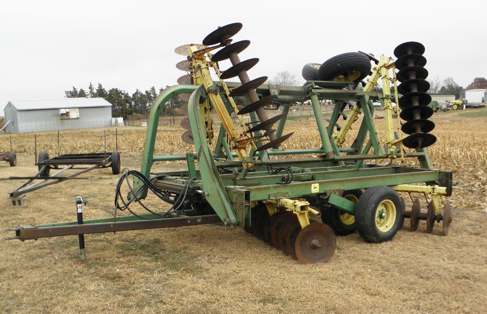 - John Deere 22ft Model 230 Folding Disc, Dual Wheels on the Main, Single Wheels on the Wings, Near New Tires, 9in Spacing, 9.5-20in Blades