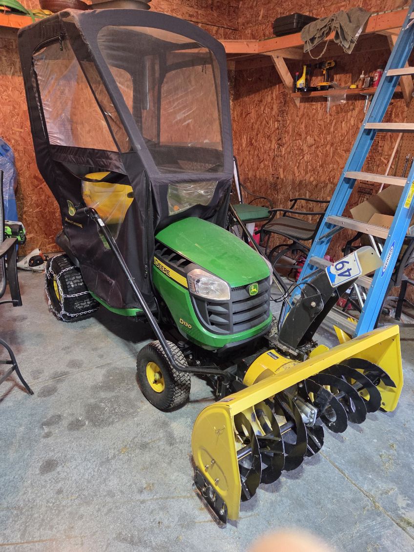 • JD D130 Hydro 22hp Briggs w/42” snowblower, cab & rear chains